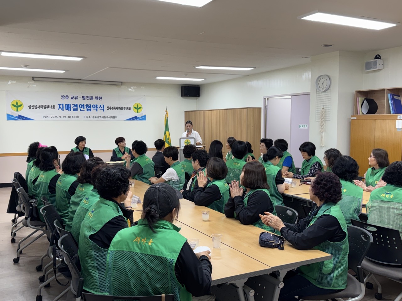 서귀포시 성산읍새마을부녀회(회장 박영실)는 지난 9월 29일 광주 동구 산수1동을 방문해 자매결연 협약식을 갖고 상호 교류·협력을 약속했다.