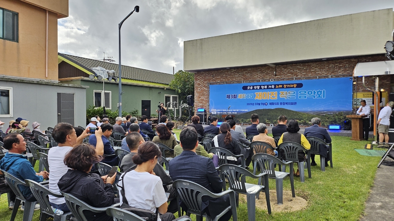 서귀포시 표선면 세화1리마을회(이장 고태숙)은 지난 9일 세화1리 종합복지회관에서 작은 음악회를 개최했다.