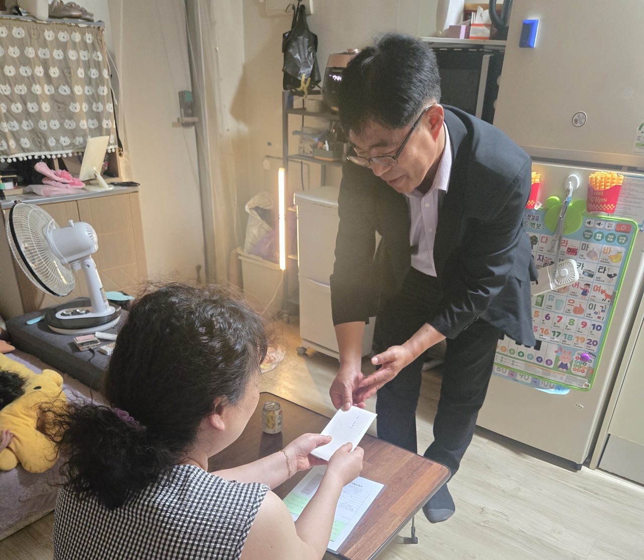 서귀포시 대정읍(읍장 한분도)은 추석 명절을 맞이해 지난 2일, 척추질환 수술을 앞둔 지역의 취약계층 가구를 방문해 대정읍 직원들이 모금한 성금 30만원을 전달했다.
