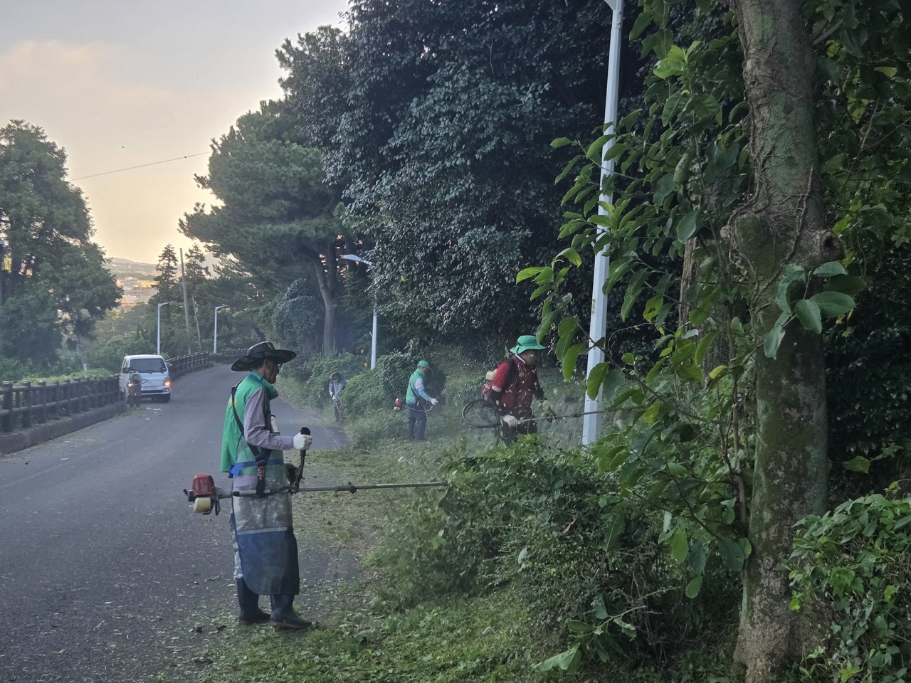 서귀포시 천지동새마을지도자협의회(회장 현시흥)는 지난 12일, 회원 10여 명이 참석한 가운데 지역 사회의 환경미화 활동으로 지역 주요 도로(태평로, 서홍로, 하논로 일대)에 대한 예초작업 및 환경정비를 실시했다.