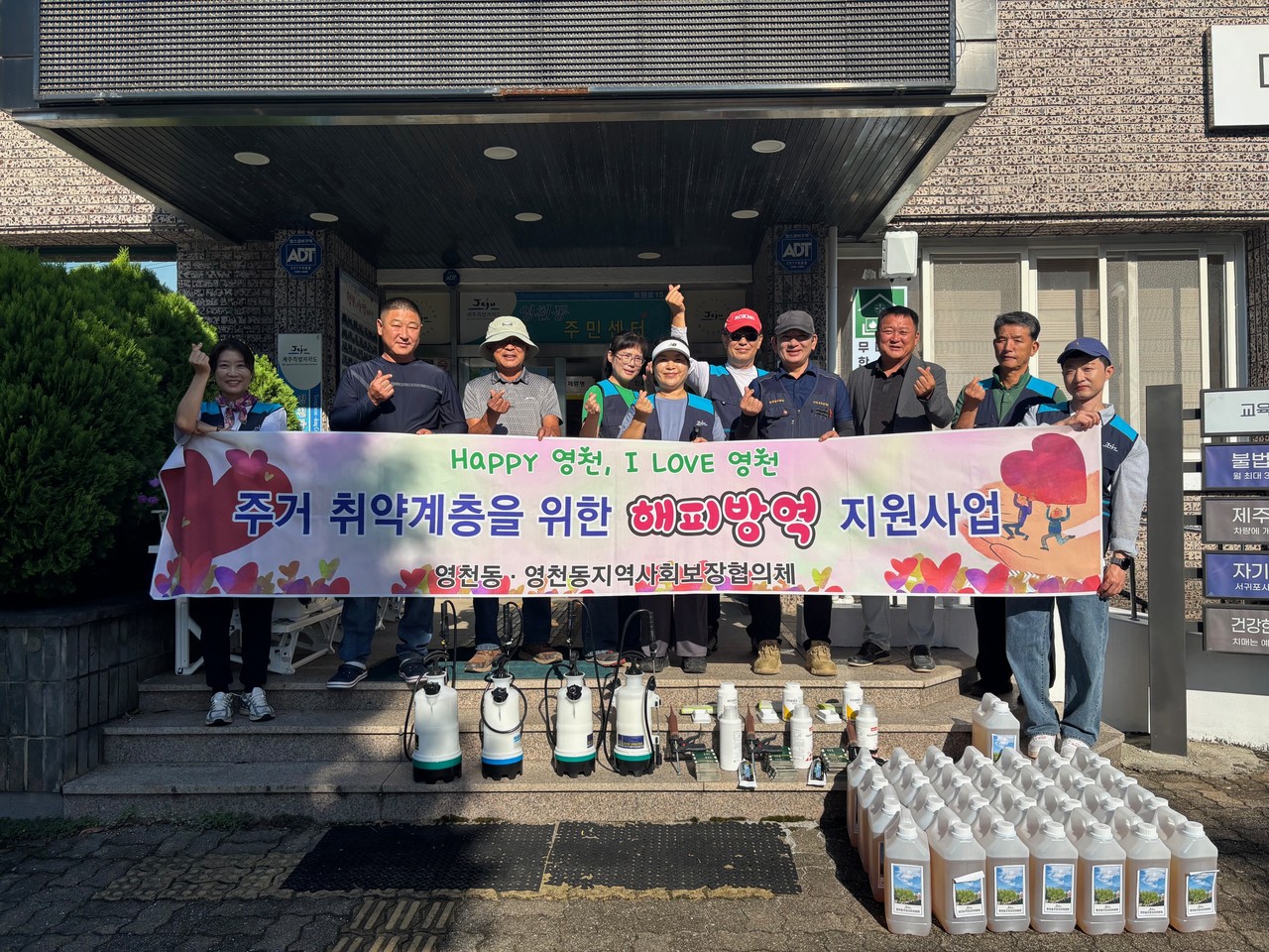 해피방역 지원사업은 바퀴벌레, 쥐, 해충 등에 취약한 주거복지 사각지대 대상 가구에 실내․외 방역서비스 및 청결한 주거환경을 제공하는 영천동지역사회보장협의체 특화사업이다.