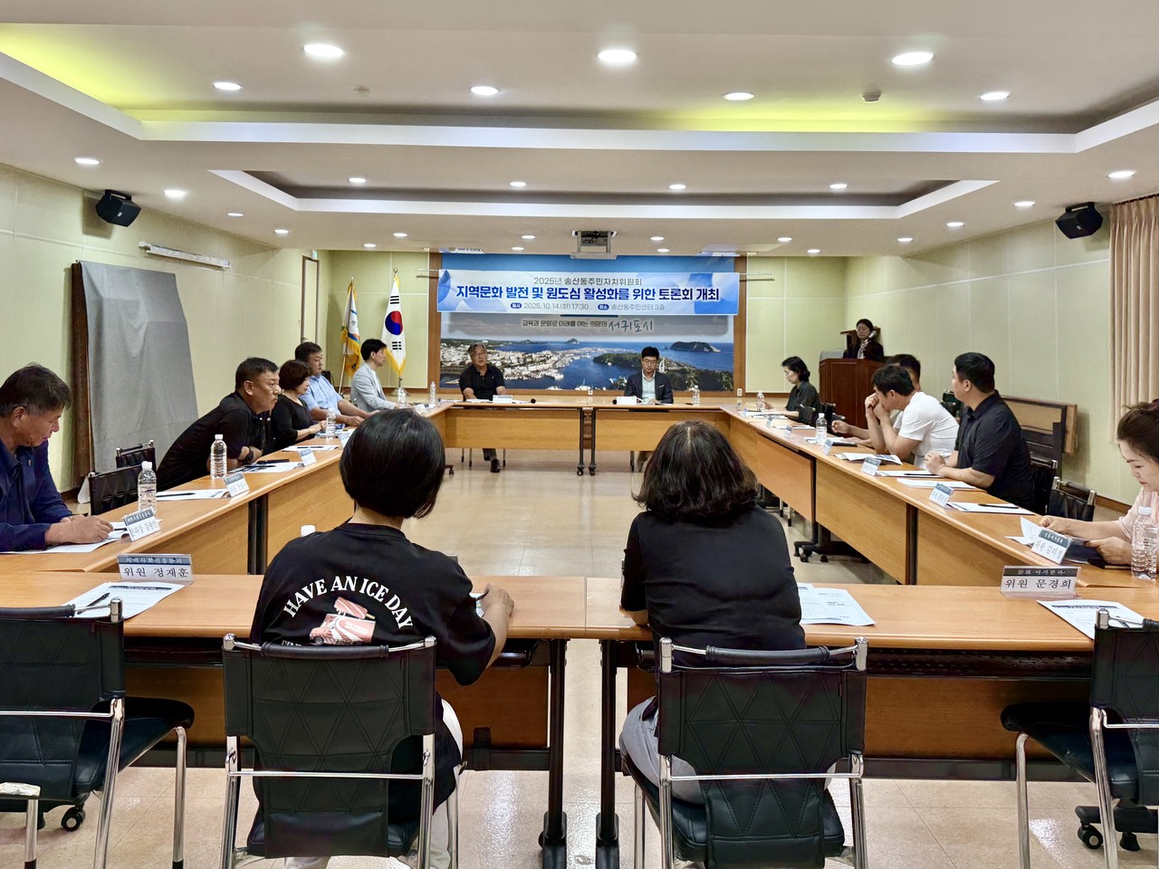 서귀포시 송산동주민자치위원회(위원장 이준호)는 지난 14일 위원 20여명이 참여한 가운데 송산동주민센터 3층 회의실에서 지역문화 발전 및 원도심 활성화를 위한 토론회를 개최했다.
