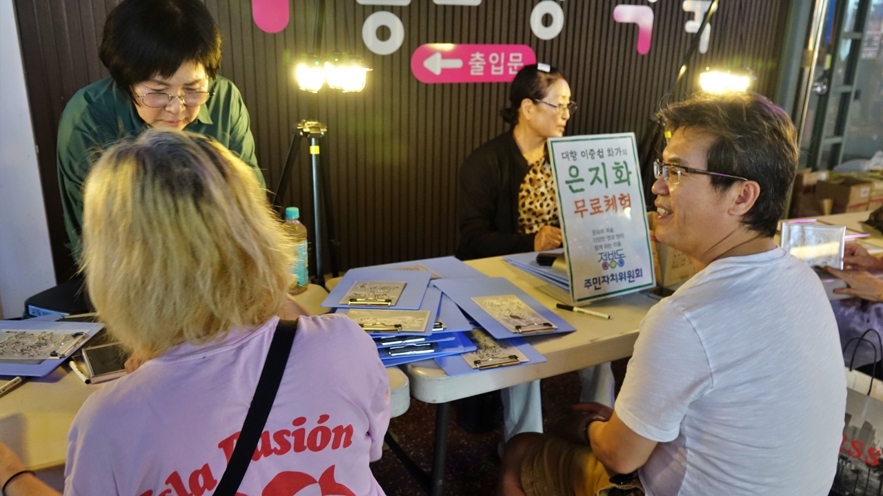 서귀포시 정방동 주민자치위원회(위원장 고홍식)는 지난 12일, 정방동 이중섭로 일원에서 ‘이중섭 은지화 체험’, ‘타로 체험’ 등 주민과 함께하는 ‘문화 나눔 부스’를 무료로 운영해 큰 호응을 얻었다.