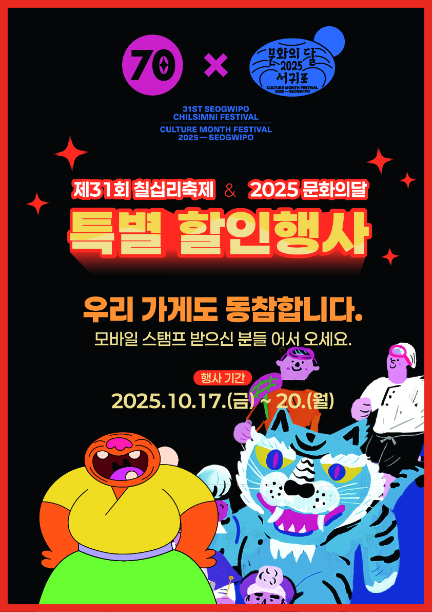 서귀포시는 '제31회 서귀포칠십리축제 & 2025 문화의달 행사'를 맞아 지역 상권 활성화를 위한 다양한 연계 이벤트를 운영한다고 밝혔다.