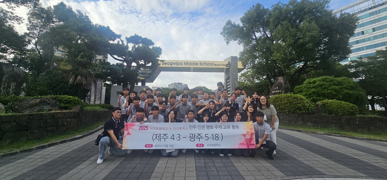 서귀포중학교(교장 한상희) 학생자치회는 지난 16일 서귀포중학교 등에서 광주광역시 지산중학교 학생자치회와 함께 ‘제주 4·3과 광주 5·18’을 주제로 한 민주·인권·평화 교류 활동을 진행했다.