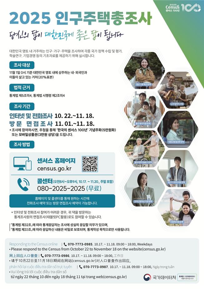 서귀포시는 오는 22일부터 11월 18일까지 '2025 인구주택총조사'가 실시된다고 밝혔다.