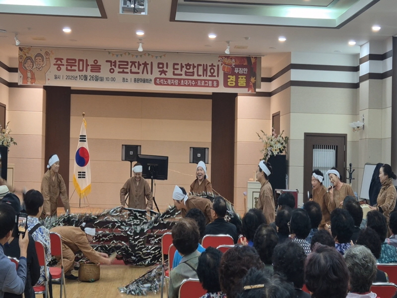서귀포시 중문마을회(회장 김지환)는 지난 26일 중문마을회관에서 지역주민 500여 명이 참여한 가운데 경로잔치 및 주민 단합대회를 개최했다.