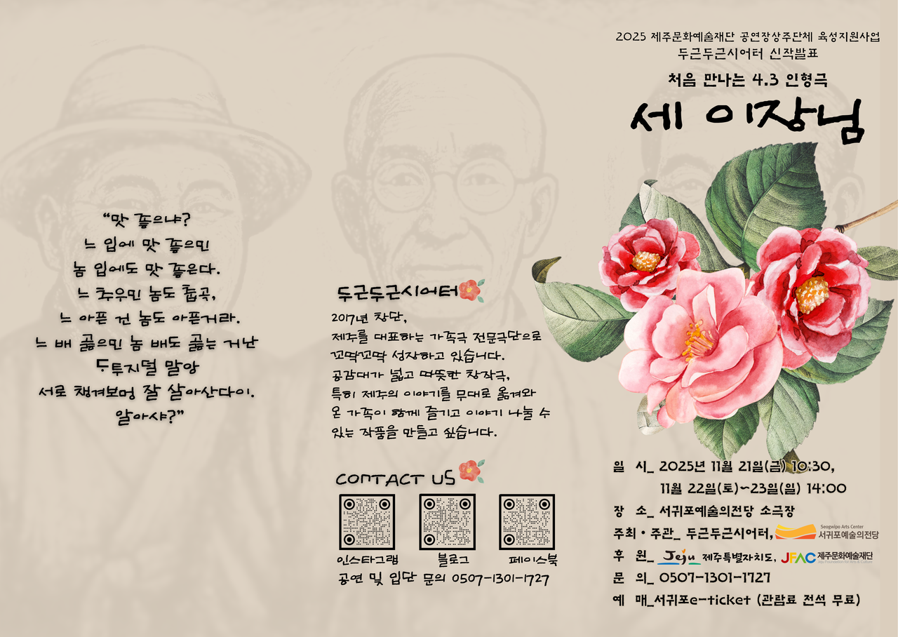 서귀포예술의전당 관계자는 "'세 이장님'은 제주 4·3을 어린이의 눈높이에서 풀어낸 의미 있는 작품으로 예술을 통해 세대 간의 이해와 공감이 확산되길 바란다"라고 전했다.