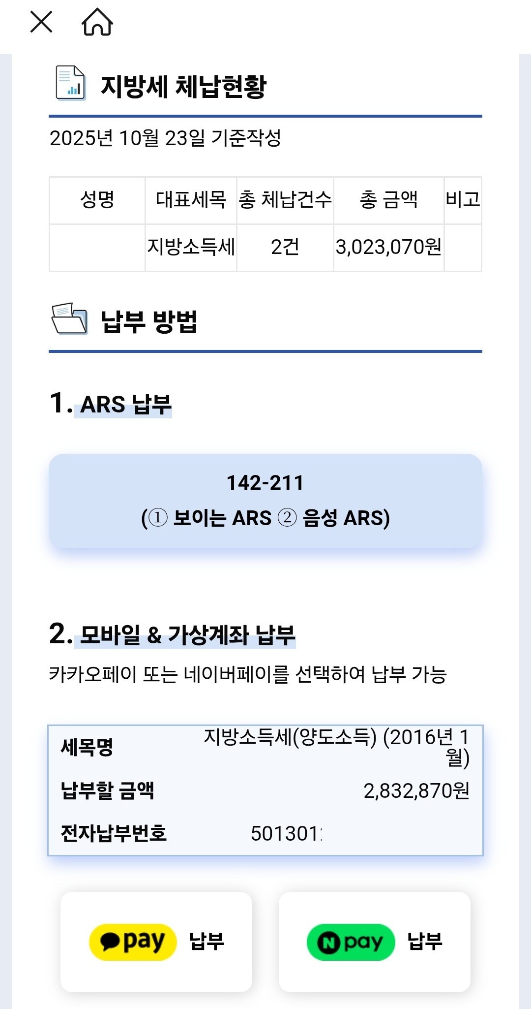이번 발송 대상은 지방세 체납자 1만4091명(약 57억 원)으로, 카카오페이·네이버페이를 통해 별도 앱 설치 없이 납부할 수 있으며, 위택스·가상계좌·ARS 등 다양한 방법으로도 편리하게 납부가 가능하다.