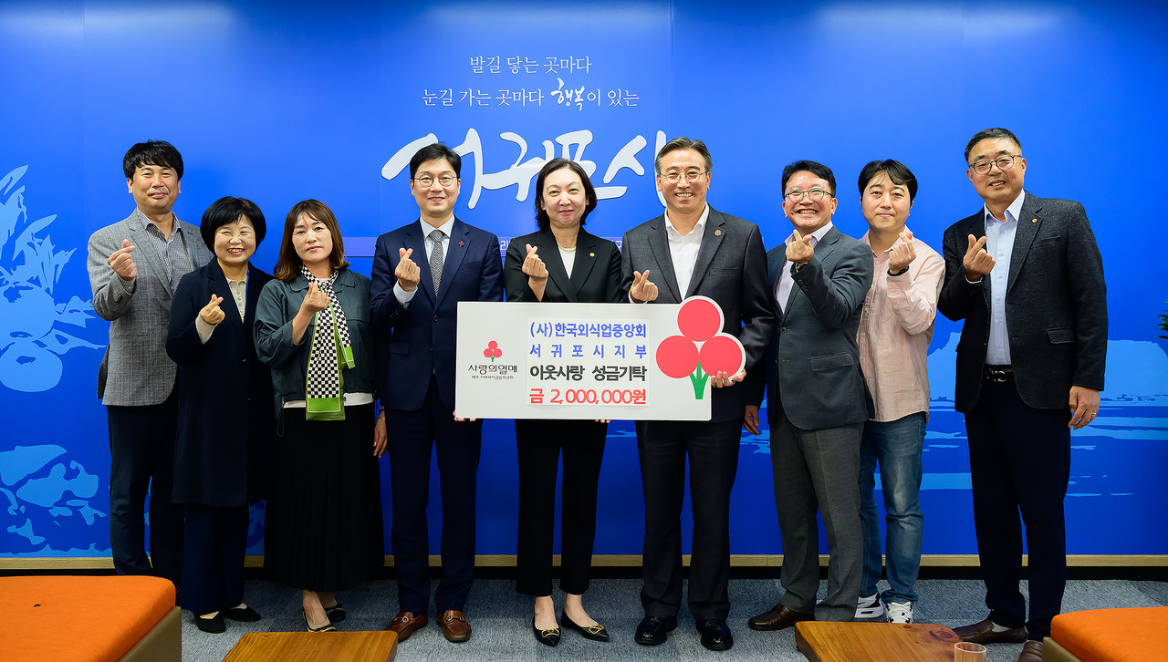 (사)한국외식업중앙회 서귀포시지부(지부장 이분여)는 지난 3일 서귀포시청을 방문해역 내 어려운 이웃을 위한 이웃돕기 성금 200만원을 기탁했다.