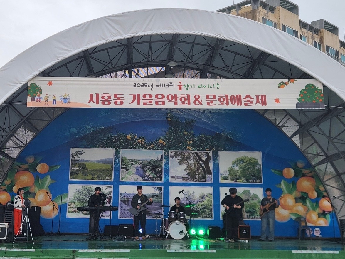 서귀포시 서홍동(서홍동장 오희경)과 서홍동주민자치위원회(위원장 한봉석)는 지난 8일 서홍동 소공원에서 개최된 ‘2025년 제13회 귤향기 피어나는 서홍동 가을음악회&문화예술제’를 성황리에 마쳤다고 밝혔다.