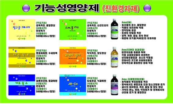 취급품목은 한라봉‧하우스감귤용 보카시1호, 감귤전용 보카시3호, 원예범용 EM보카시 등 정부보조비료인 혼합유기질비료와 따봉한라봉, 따봉감귤, 토지대장 등 제3종복합비료 등이 있다.