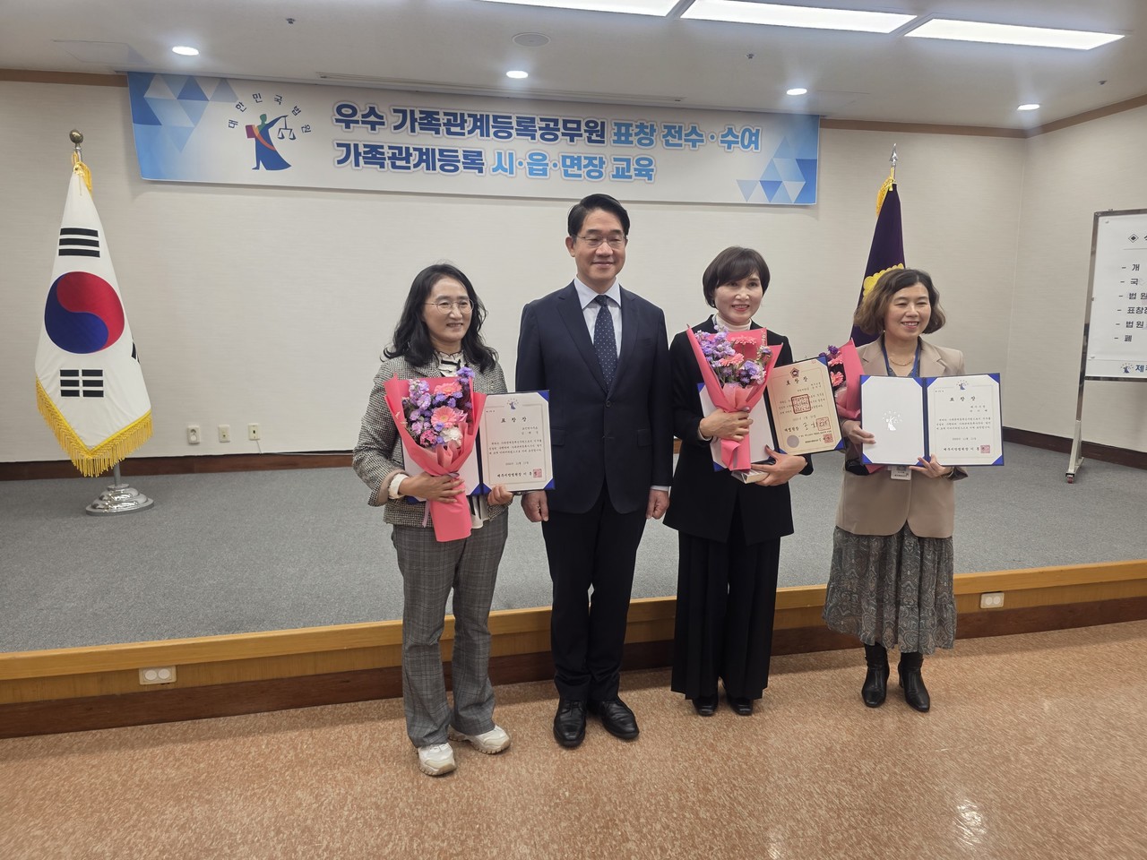 서귀포시 표선면(면장 문철환) 김해정 주무관이 지난 11일 제주지방법원에서 가족관계등록 업무의 전문성과 책임성을 인정받아 우수가족관계등록공무원 법원장 표창을 수상했다.
