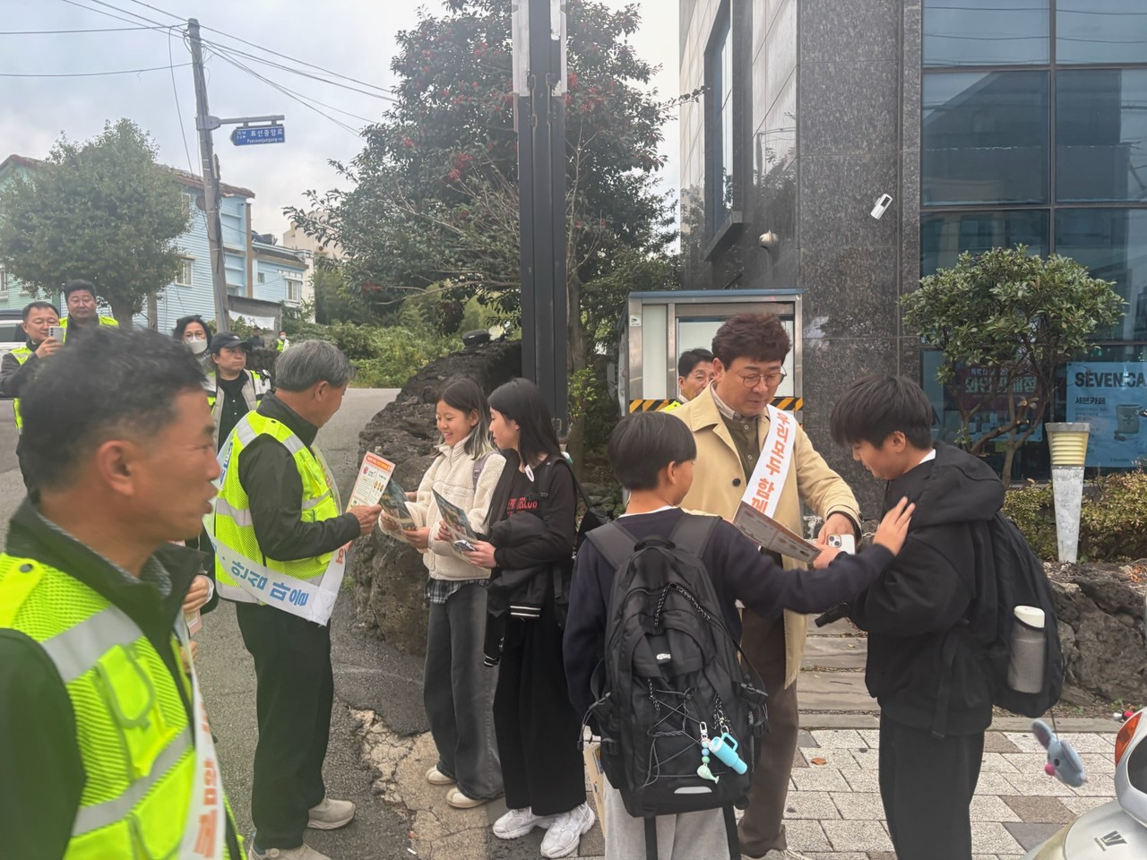 서귀포시 표선면 안전협의체(위원장 강창규)는 지난 12일, 한마음초등학교 일대에서 등하굣길 교통안전 및 어린이 보호구역 내 안전의식 증진을 위한 캠페인을 실시했다.