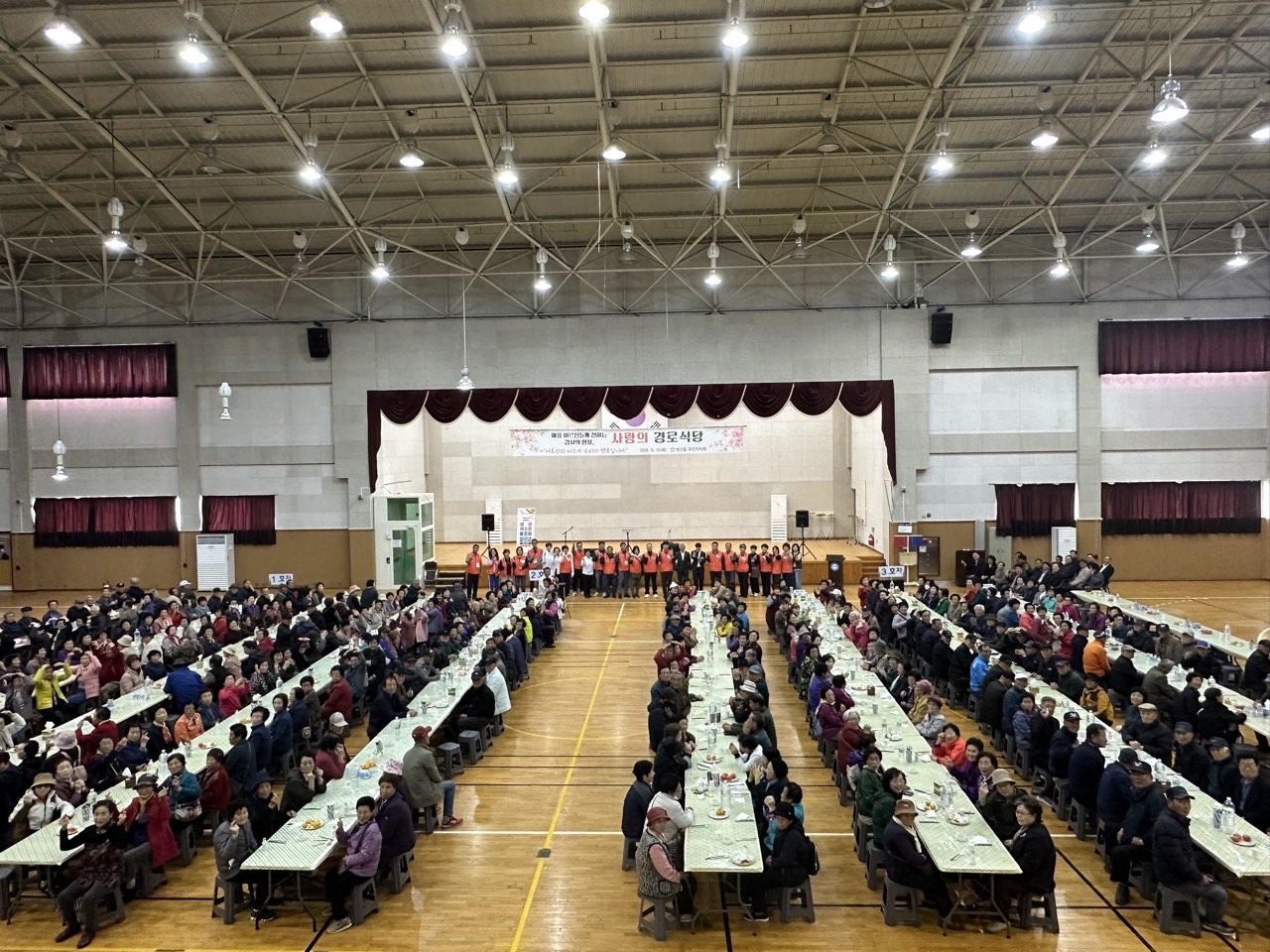 서귀포시 성산읍주민자치회(회장 오금철)는 지난 13일 성산국민체육센터에서 관내 14개 마을 어르신 400여 명을 초청해 ‘사랑의 경로식당’ 행사를 개최했다.