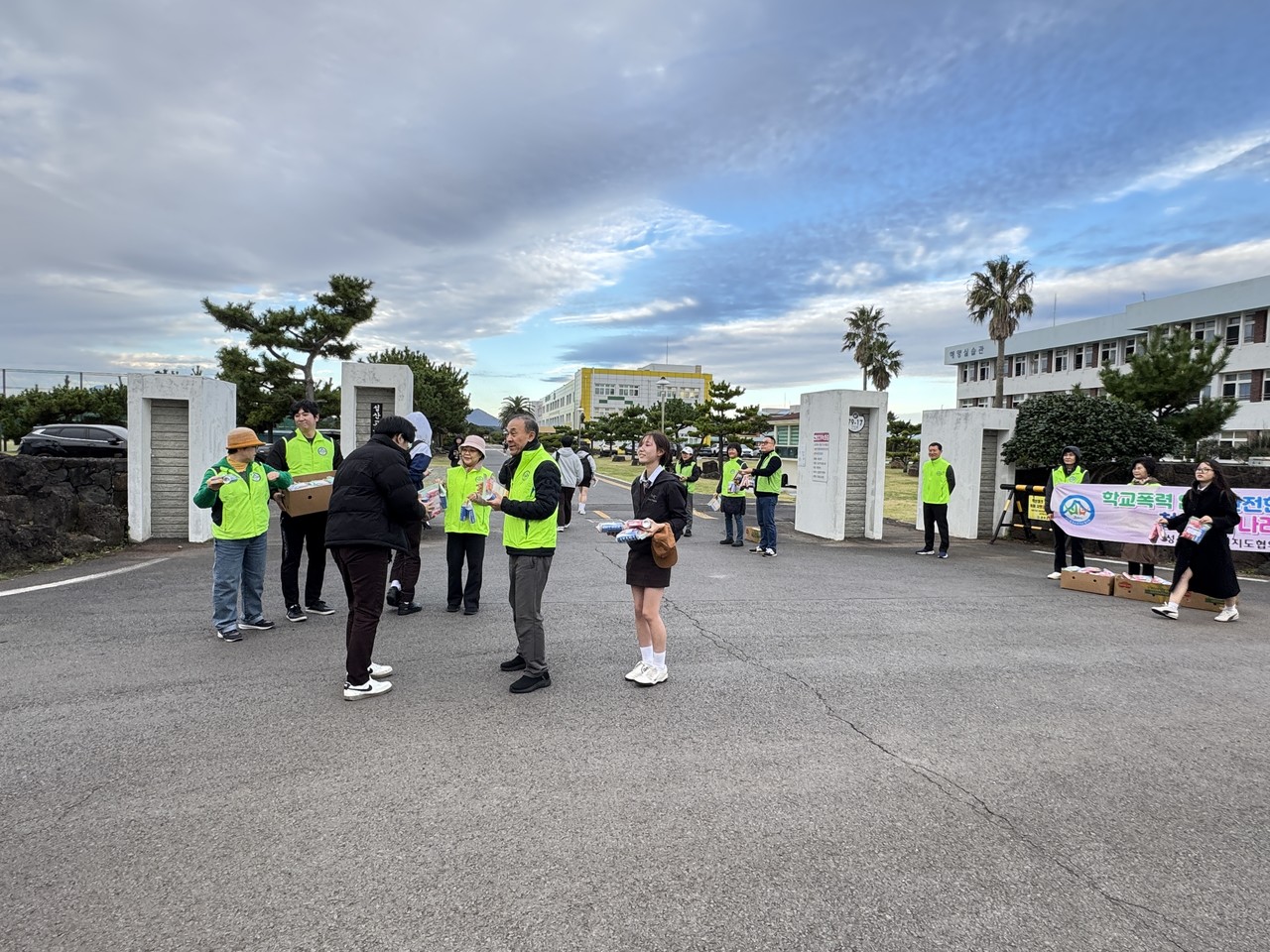 이날 캠페인에는 성산고 생활지도 교사와 학생 성산읍청소년지도협의회 임원 등이 참여해 학생에게 간식을 나눠주고 피켓을 활용해 학교폭력 예방 홍보 등을 전개했다.