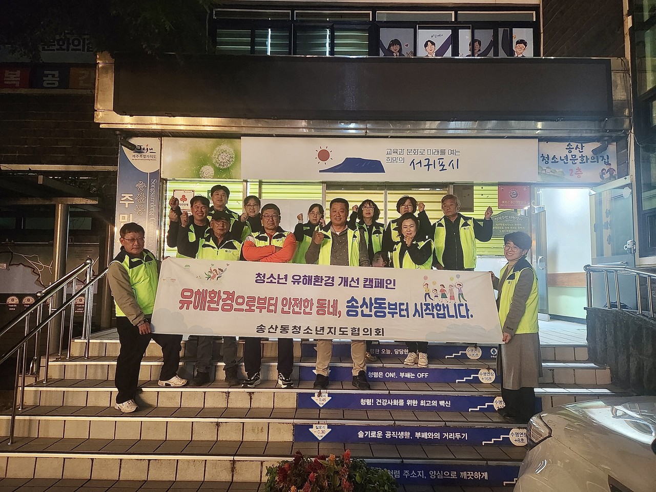 서귀포시 송산동청소년지도협의회(회장 이태훈)는 지난 25일 송산동청소년지도위원 15여 명이 참여해 청소년 유해환경개선 캠페인을 실시했다.