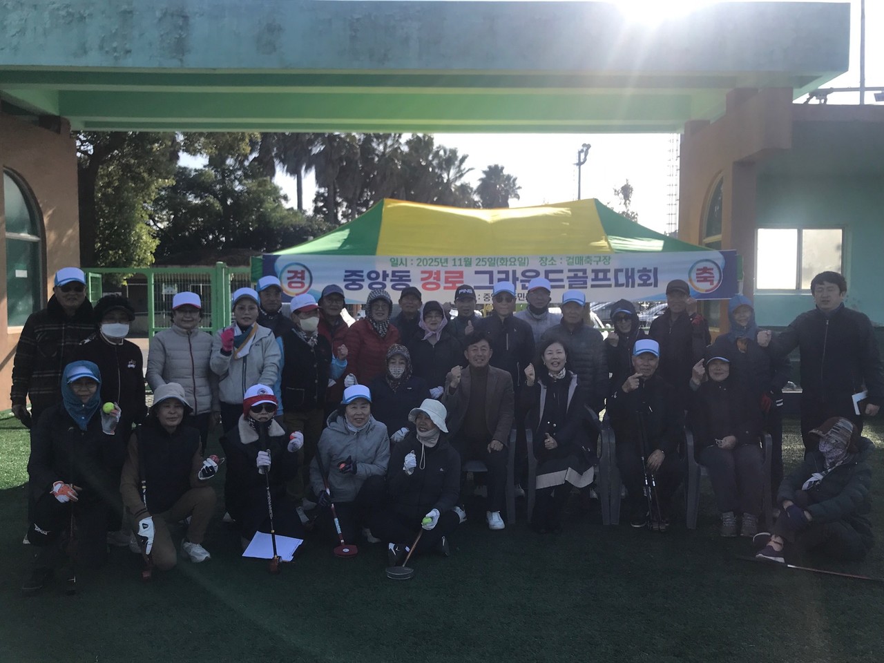 서귀포시 중앙동노인회(회장 부윤철)는 지난 25일 걸매생태공원축구장에서 관내 어르신 50여 명이 참석한 가운데 ‘제1회 중앙동 노인 그라운드골프대회’를 개최했다.