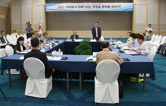 서귀포비전21(위원장 오제호)과 서귀포시관광협의회(회장 민명원), 서귀포시상공회(회장 김대환)가 공동주관한 이날 토론회에는 고창후 서귀포시장을 비롯해 문대림 제주도의회 의장, 허진영 부의장, 위성곤.오대익.문석호.오충진.현정화 의원, 시민 등 300여명이 자리했다.
