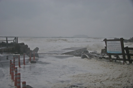 오후 3시를 기해 서귀포 지역에 가장 근접(서쪽 270km)한 무이파는 오후 7시40분 현재 목포까지 진출한 상태다. 하지만 초속 36m의 강한 바람은 여전히 서귀포에 영향을 미치고 있다.