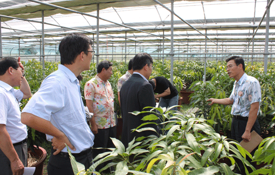 7명의 지역농가들로 구성된 행복나눔 영농조합(대표 양신석)은 지난해 시범사업자로 선정되면서 사업비 7억5000만원을 지원받아 발전소 온배수를 하우스 가온에 본격 활용하고 있다. 5265㎡ 규모의 시설원예 단지에 감귤과 애플망고를 재배하면서 냉난방을 조절하는 열펌프 장비, 최대 4h까지 낸방방이 가능한 배관시설 등을 갖췄다. 지난 7월27일에는 제주도농업기술원과 남제주화력발전소가 이곳에서 시범원예 단지 준공식을 개최하며, 전국 최초로 발전소 온배수를 활용해 시설농업에 활용하는 모습을 선보여 관심을 끌었다.