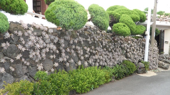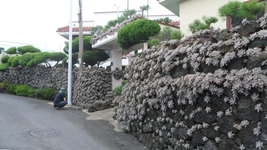 담벼락 윗부분에서 땅바닥에 이르기까지 선인장과 비슷한 종류의 ‘용월’이라는 다육식물이 한창 짙은 회색빛 꽃망울을 터뜨려 신비롭고 경이로운 경관을 연출하고 있기 때문이다.