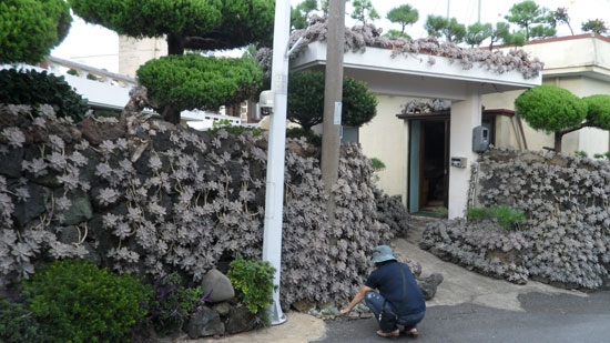 평소 꽃가구끼를 좋아하던 김 할아버지는 1988년 쇠소깍 주변에 집을 지어 이사 간 이후 인근 소금막 해변에 자생하는 다육식물 용월을 돌담 담벼락 틈마다 흙을 집어넣어 가꿔나갔다. 다람쥐 쳇바퀴 돌 듯 그런 작업을 하기를 무려 20여년.