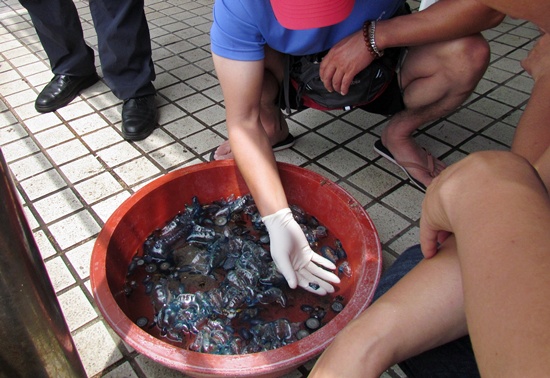 서귀포해경에 따르면 먼저 오전 7시 40분에 해상안전요원이 해변 순찰 중 해파리를 발견했고, 오전 9시50분 및 오후 12시 25분에는 수영을 즐기던 2명이 작은부레관해파리에 쏘였다.
