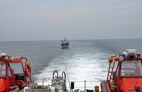 서귀포해양경찰서(서장 정봉훈)는 21일 새벽 4시경 서귀포시 남동쪽 38해리(약 76km)해상에서 원인 미상의 고장으로 긴급구조를 요청한 997해진호(29톤, 승선원 8명, 선장 김모(37. 성산읍)씨)를 구조해 현재 서귀포항으로 예인 중이다.
