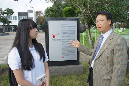 고경아: 제주 역사는 교과서에서 보는 것과 달라요. 교과서에서 보는 것은 육지 쪽의 입장이잖아요. 제주도는 신도 많고, 재미있는 설화도 많고, 유적지도 많아요. 혼인지, 삼성혈과 같은 유적지가 많은데, 학교에서 소풍을 가도 “여긴 혼인지야, 여긴 삼성혈이야.”그 정도만 알려주세요. 사실 그런 것 말고 좀더 정리되고, 아이들의 수준에 맞는 것을 가르쳐주었으면 좋겠습니다. 제가 초등학생 때 학교에서 소풍으로 4.3 평화공원에 간 적이 있었어요. 4.3 평화공원이 하루 종일 봐도 볼 것이 많은 곳이잖아요. 그런데 그 당시 공원에 대한 설명이 무척 어렵고 낯설었던 기억이 있어요. 어린 아이의 눈으로는 일단 말 자체가 너무 어려웠어요. 그냥 그곳에 가는 것이 중요한 것이 아니라 아이들 눈높이에 맞는 교육이 필요하다고 생각합니다.
