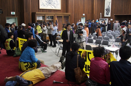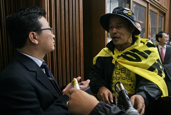 고 위원장은 “순수한 마음으로 듣고 싶으면, 가장 뼈대가 되는 해군기지사업에 대해서 지역주민들이 납득할 만 한 것을 먼저 하시고 발전계획 설명회를 하라”며 “항구라는 것이 한번 지어지면 백 년 갈지 천 년 갈지 모르는 것 아니냐. 그렇다면 지역주민을 납득시킬 때 까지 중지도 못 시키느냐. 정부가 그 정도도 안 되느냐. 왜 주민들 가슴에 못질을 하는 공사 진행을 하면서 대화하자고 하느냐”고 몰아붙였다.