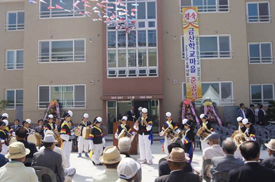 이에 마을 주민들이 발벗고 나섰다. 마을주민과 출향민 등이 11억여억원을 모금하고 지상 3층짜리 4개 동에 66㎡형 24가구로 구성된 금산학교마을을 건설해 성공적으로 임대 분양을 마친 것이다. 이 마을에 입주하겠다고 신청한 가구는 모두 34가구. 이들 가구를 대상으로 마을 주민들은 심의위원회를 열어 심사 끝에 초등학교 1∼4학년 자녀를 둔 24가구를 선정했다.