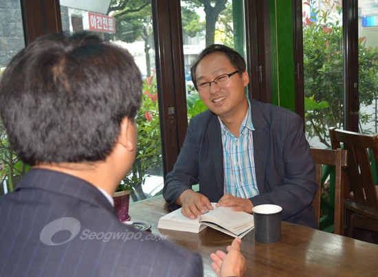 '책읽는 서귀포, 칠십리 책방'에서는 '2012-2013 서귀포시민의책읽기' 선정도서를 읽은 독자와 만나 대화를 나눈다. 이번에 만난 사람은 올해 초 서귀포에 정착한 민경천 씨. 40대 중반인 그는 제주 특산품 개발과 유통업 분야에서 일하고 있다. 자연스럽게 살고 싶어 제주에서 제주스럽게(!) 살고 싶다는 그를 만나 제주에 대한 그의 경험과 책읽기에 대한 생각을 함께 나누었다. 주말의 한가로움이 묻어나는 늦은 저녁 서귀포시내 한 카페에서 진한 커피를 리필해 가면서 대화가 진행됐다.