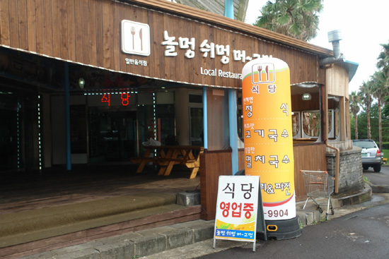 중문 천제연폭포 입구에는 ‘놀멍쉬멍 머~그멍’과 ‘놀멍쉬멍 카페테리아’란 간판이 내걸려, 관광객들의 눈길을 사로잡는다. 특이한 것은 현대적 목조건물로 지어진 이들 식당과 카페에선 60세를 넘은 어르신들이 모두 주인과 종업원이란 점.