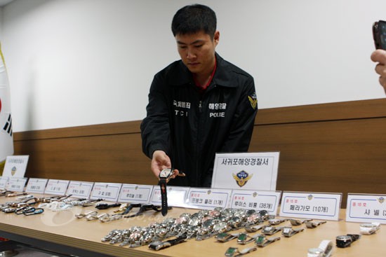 해경은 도내 귀금속점 등을 상대로 위조시계를 판매한다는 첩보를 입수해 추적하다 지난달 29일 오후 2시30분께 서귀포시내에서 김 씨를 검거했다. 당시 김 씨의 차량 내부에서 발견된 위조시계 17종 137점을 압수했다.