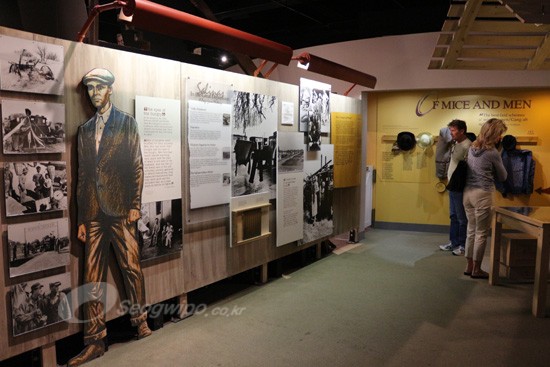 ■ 수천명의 기부와 참여로 센터 설립= 30년 전, 살리나스시 남북쪽 외곽지에 대형 쇼핑센터가 하나둘씩 들어서면서 도심에는 점점 사람들의 발길이 뜸해져갔다. 침체되어가는 도심의 경제적 부흥을 위해 이 마을은 고민에 빠졌다. 주민들은 스타인벡을 기리기 위해 1980년부터 시작된 스타인벡 페스티벌(Steinbeck Festival, 매년 5월)에 많은 사람들이 찾아오는 것을 보고, 스타인벡과 관련된 투어를 진행해 사람들이 해마다 살리나스를 찾을 수 있는 방안을 모색하기 시작했다. 이렇게 만들어진 것이 존 스타인벡 국립센터(National Steinbeck Center)이다.