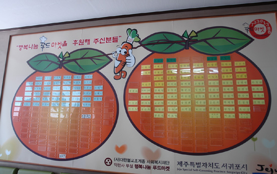 서귀포시 천지동 평생학습센터 입구 맞은편 도로에는 편의점 비슷한 매장이 들어서, 시민들의 눈길을 끈다. 겉으로 보기엔 일반 편의점처럼 보인다. 하지만 이곳은 물건을 파는 가게가 아니라, 후원자들이 기부한 물품을 복지 대상자들이 나눠 갖는 서귀포시 행복나눔 푸드마켓(센터장 김보성)이다.