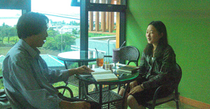 책읽는 서귀포, 칠십리 책방에서는 2012-2013 서귀포시민의책읽기 선정도서를 읽은 독자와 만나 대화를 나눈다. 이번에 만난 사람은 제주외국어고등학교 1학년 김봄빛 양. 책방대담은 안덕면 화순리, 봄빛 양 집 가까이 새롭게 선정된 서귀포시민북카페 제10호점 O 카페에서 이경주 위원장과 유쾌한 대화가 이어졌다.