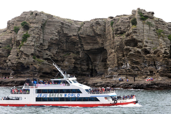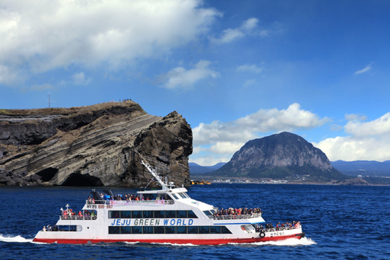 이용객들은 육지 쪽에서는 제대로 볼 수 없는 형제섬과 송악산 주상절리, 가파도와 마라도 전경을 눈 가까이에서 감상할 수 있어 즐거워한다.