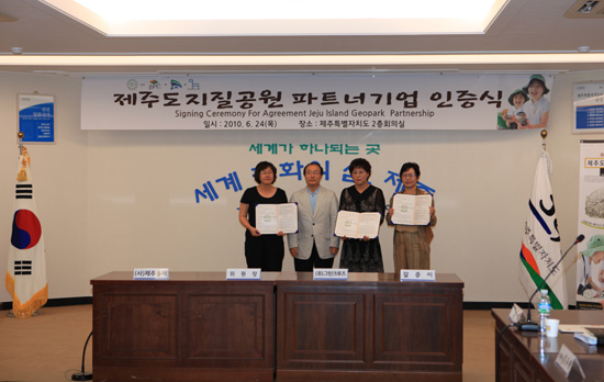유네스코 지질공원 등재를 위한 협력기업으로서 제주도 지질공원을 홍보와 활성화를 위해 지질공원 로고를 사용하는 권한을 부여받게 된 것.