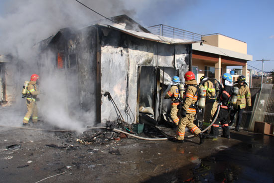 서귀포소방서에 따르면 이날 오전 10시55분경 서홍동 삼매봉 인근 조립식 건물에서 원인을 알 수 없는 화재가 발생해 10여분 만인 오전 11시10분께 진화됐다
