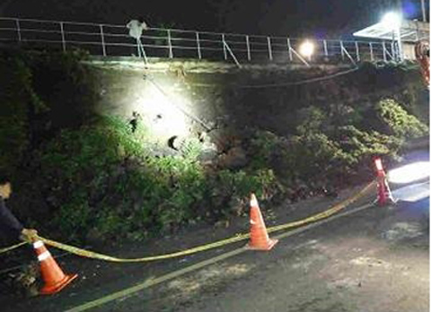 5월14일 오후 7시39분께 서귀포시 이어도로(법환동) 소재 모리조트가 전날부터 내린 강우로 인해 도로경계 지반이 약화되면서 무너지는 사고가 발생했다.