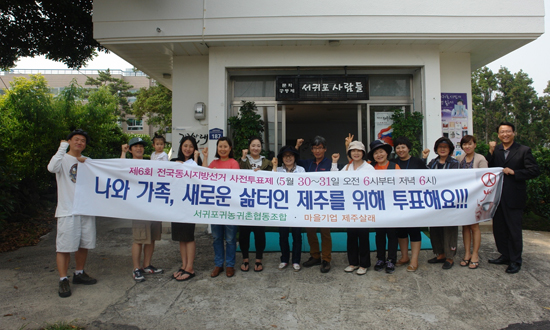 제6회 전국동시지방선거를 맞아 올해 처음 전국 규모로 실시된 사전투표제에 동참하기 위해 조합원들은 지난 31일 남원읍사무소에서 투표에 참가했다. 조합원들은 투표 당일에는 개표 방송을 함께 시청하고 토론을 즐기면서 앞으로도 적극적인 정치참여로 제주의 아름다운 미래건설에 동참할 예정이다.